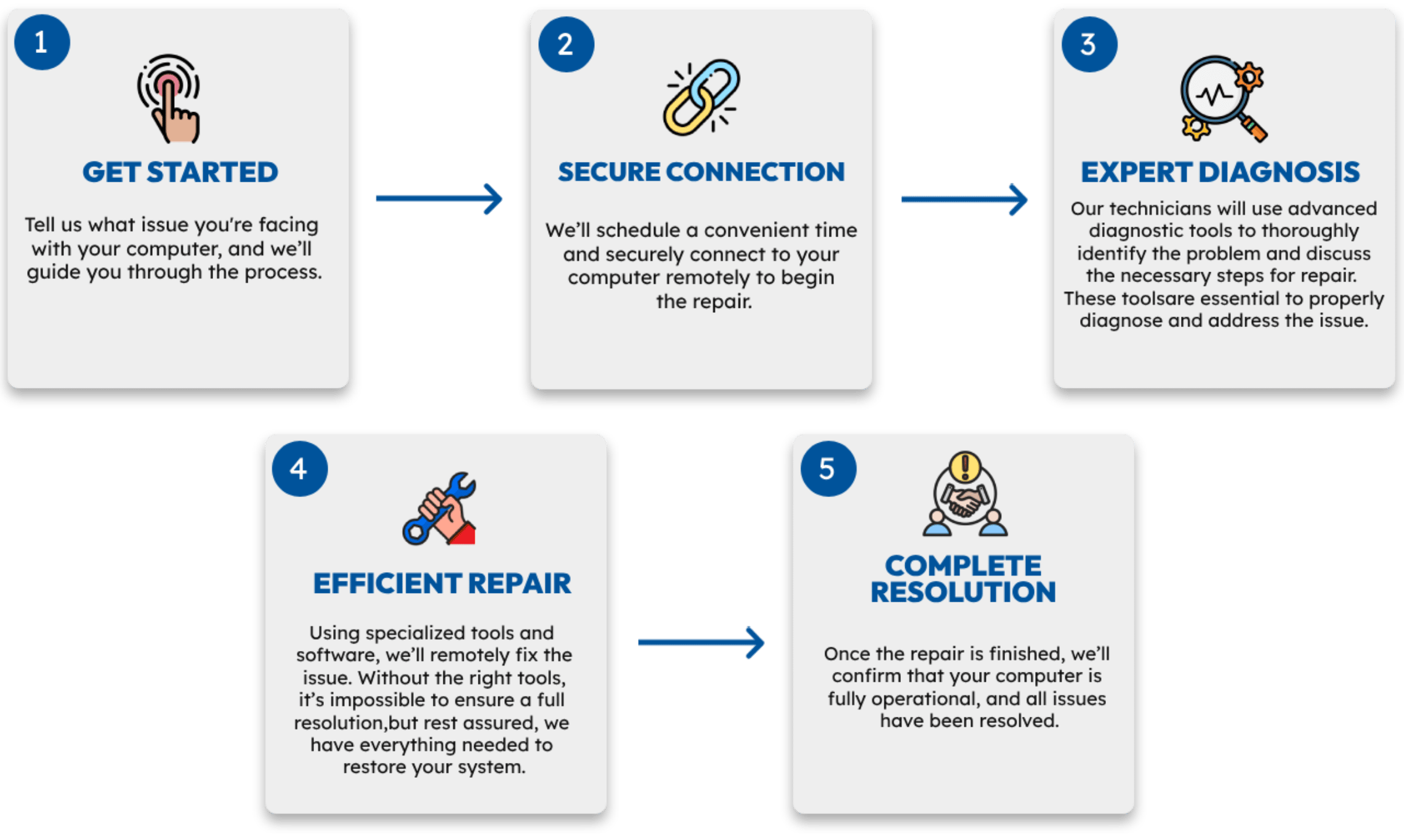 At Clear Choice Technical Services, we understand how important it is to have a well-functioning computer. So, we designed our Remote Computer Repair Service to offer you the most convenient, secure, and efficient solution.